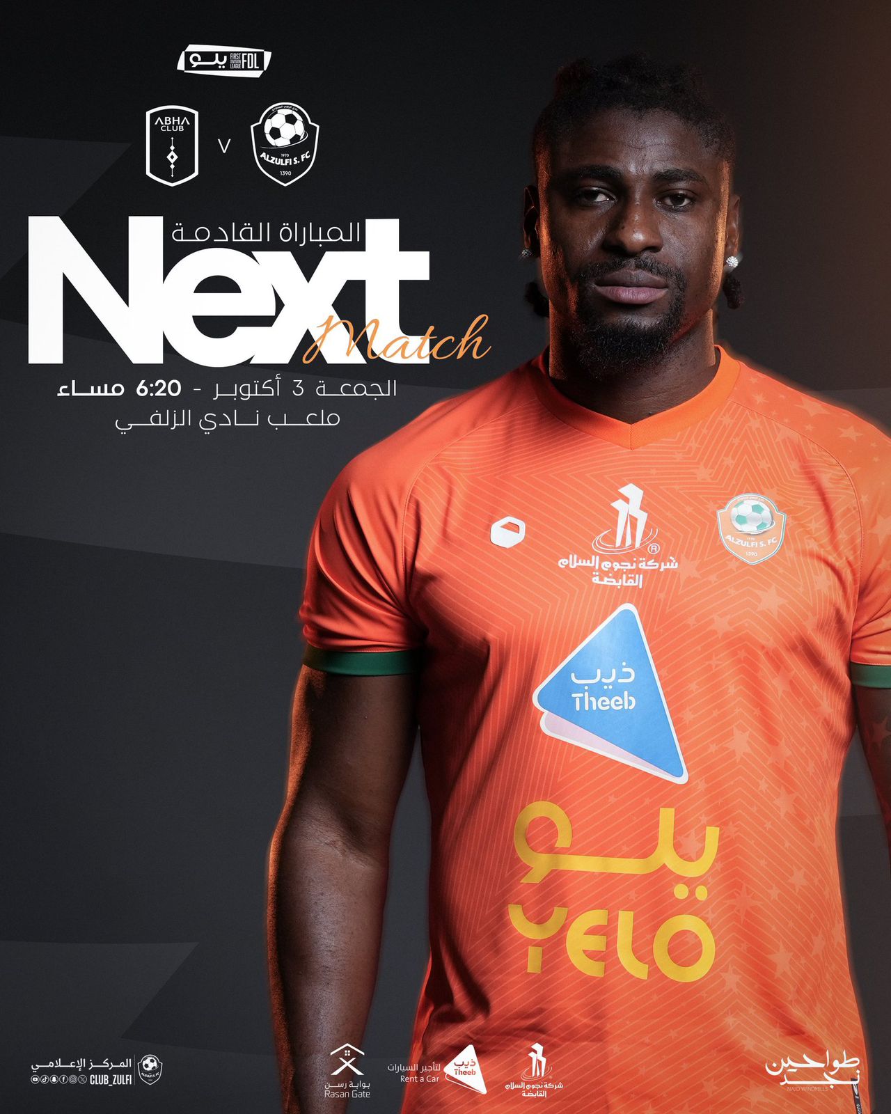 الفريق الأول في نادي الزلفي يواجه نادي أبها السعودي