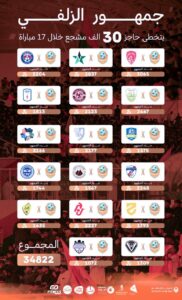 الحضور الجماهيري في الزلفي يتخطى حاجز 30 الف مشجع خلال 17 مباراة